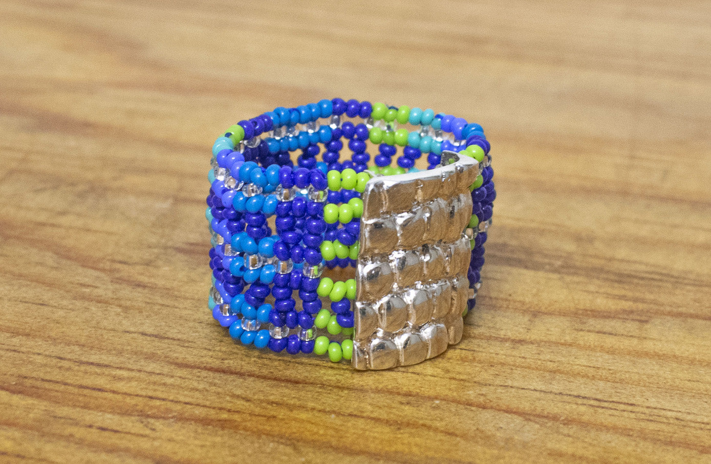 Hermoso anillo de chaquira de vidrio y plata hecho por artesanos mexicanos en el estado de Jalisco.