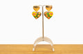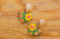 Hermosos aretes de madera tallada con forma de corazón tipo alebrije. Hechos y pintados a mano por artesanos mexicanos en el estado de Oaxaca.