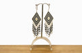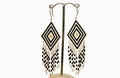Hermosos aretes de chaquira de vidrio con forma de rombo. Hechos por artesanos mexicanos en el estado de Jalisco.