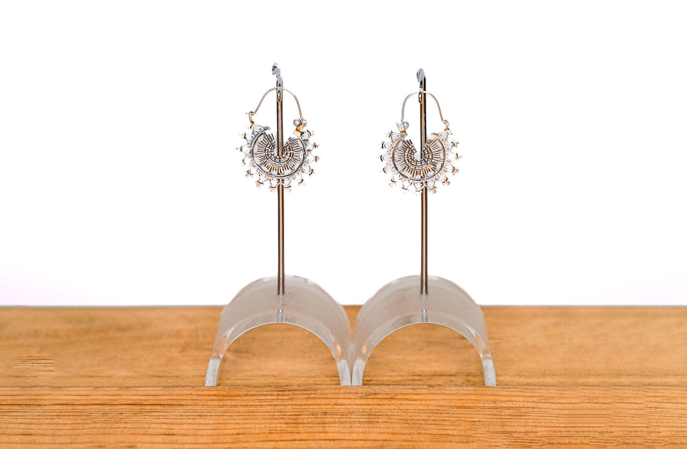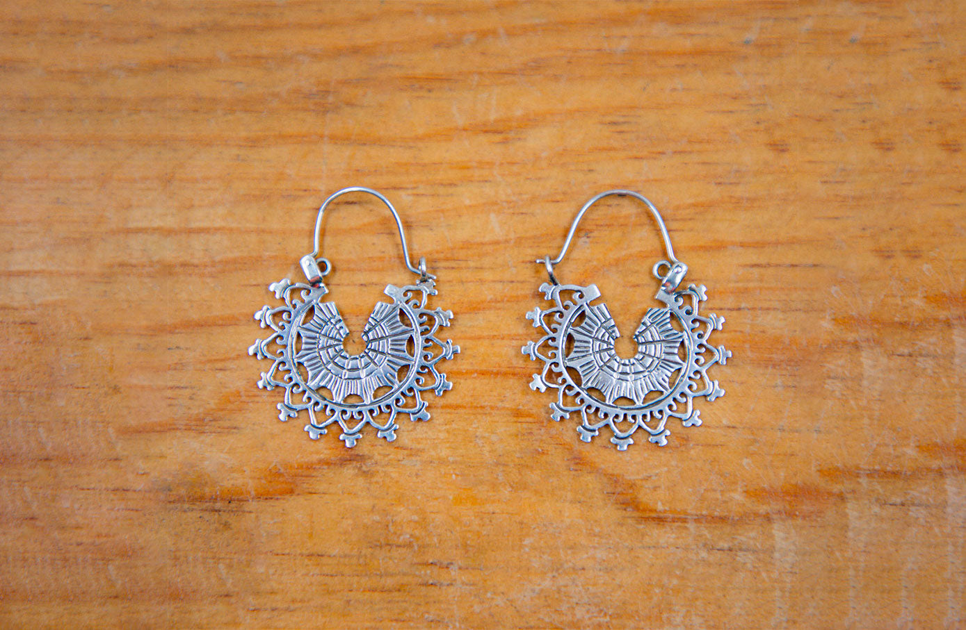 Arracadas "Camila" hechas de plata 925, elaboradas por artistas mexicanos del estado de Guerrero.