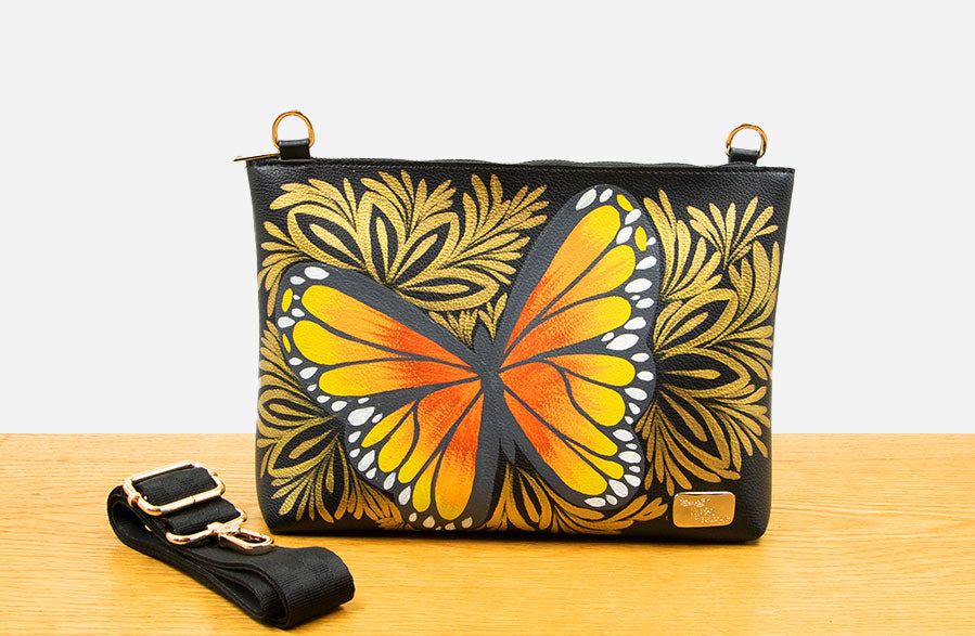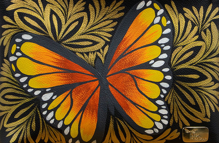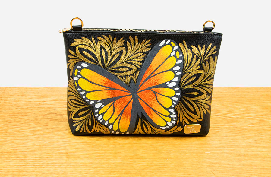 Bolsa viajera Monarca hecha por artesanos de Guanajuato