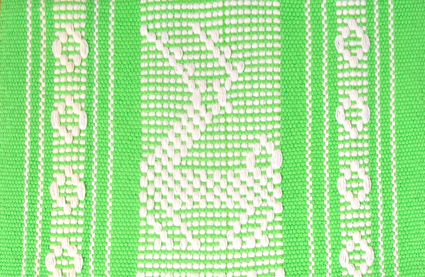 Tradicional camino de mesa de algodón, tejido en telar de cintura por artesanas mexicanas en el estado de Oaxaca.