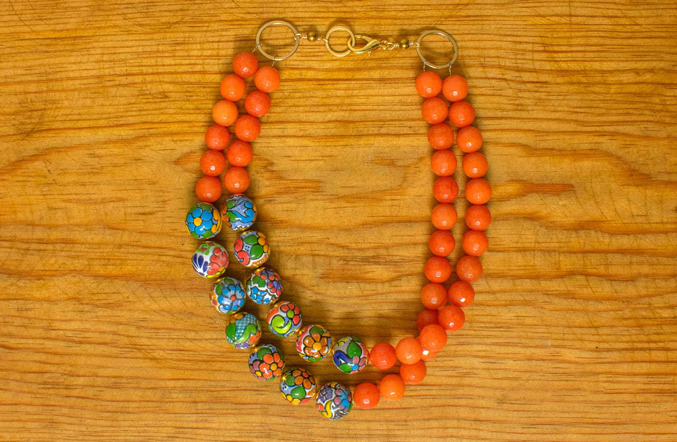 Colorido collar de cerámica tipo talavera, hecho y pintado a mano por artesanos mexicanos en el estado de Jalisco.