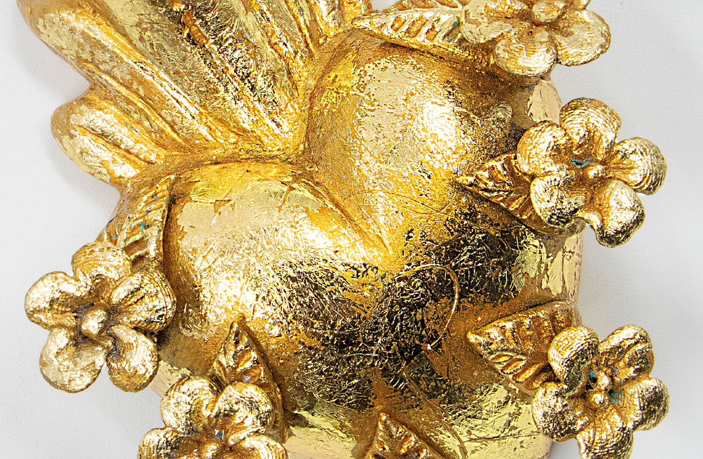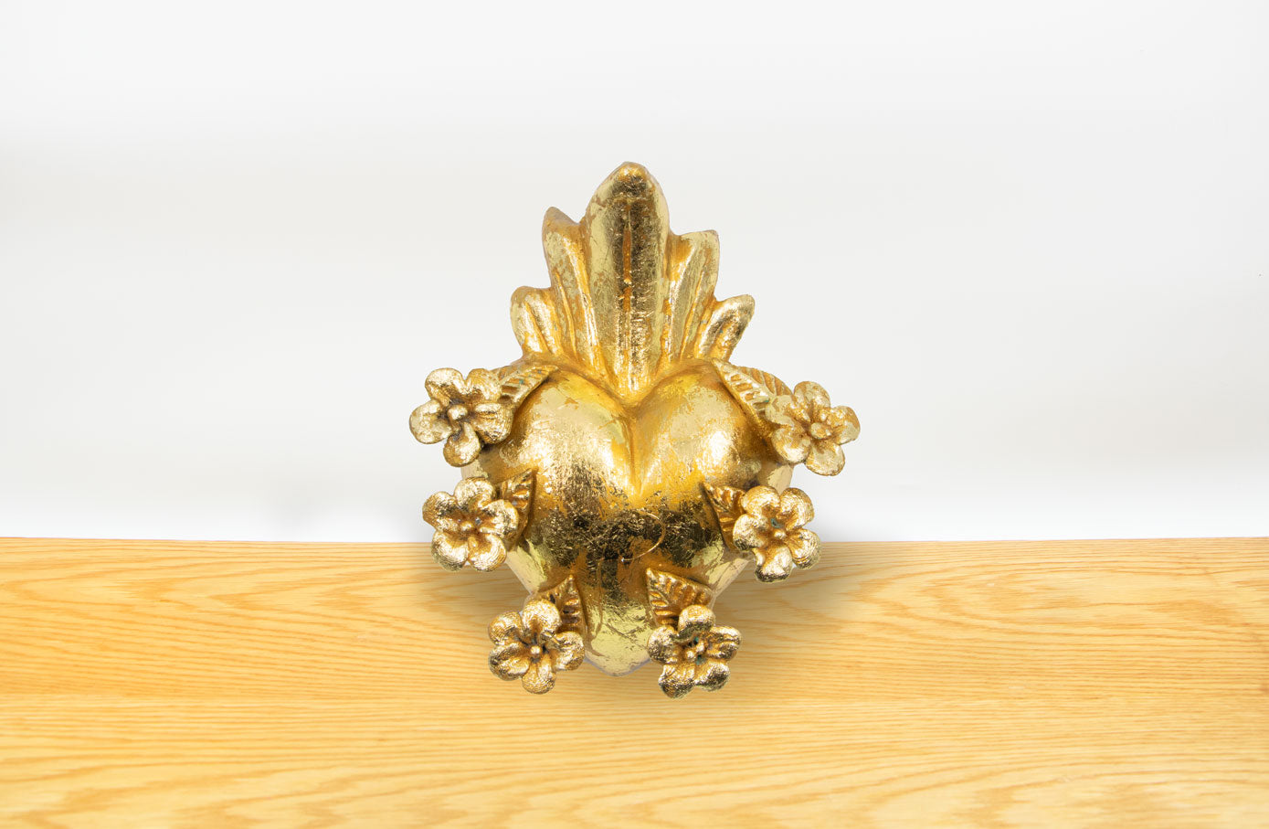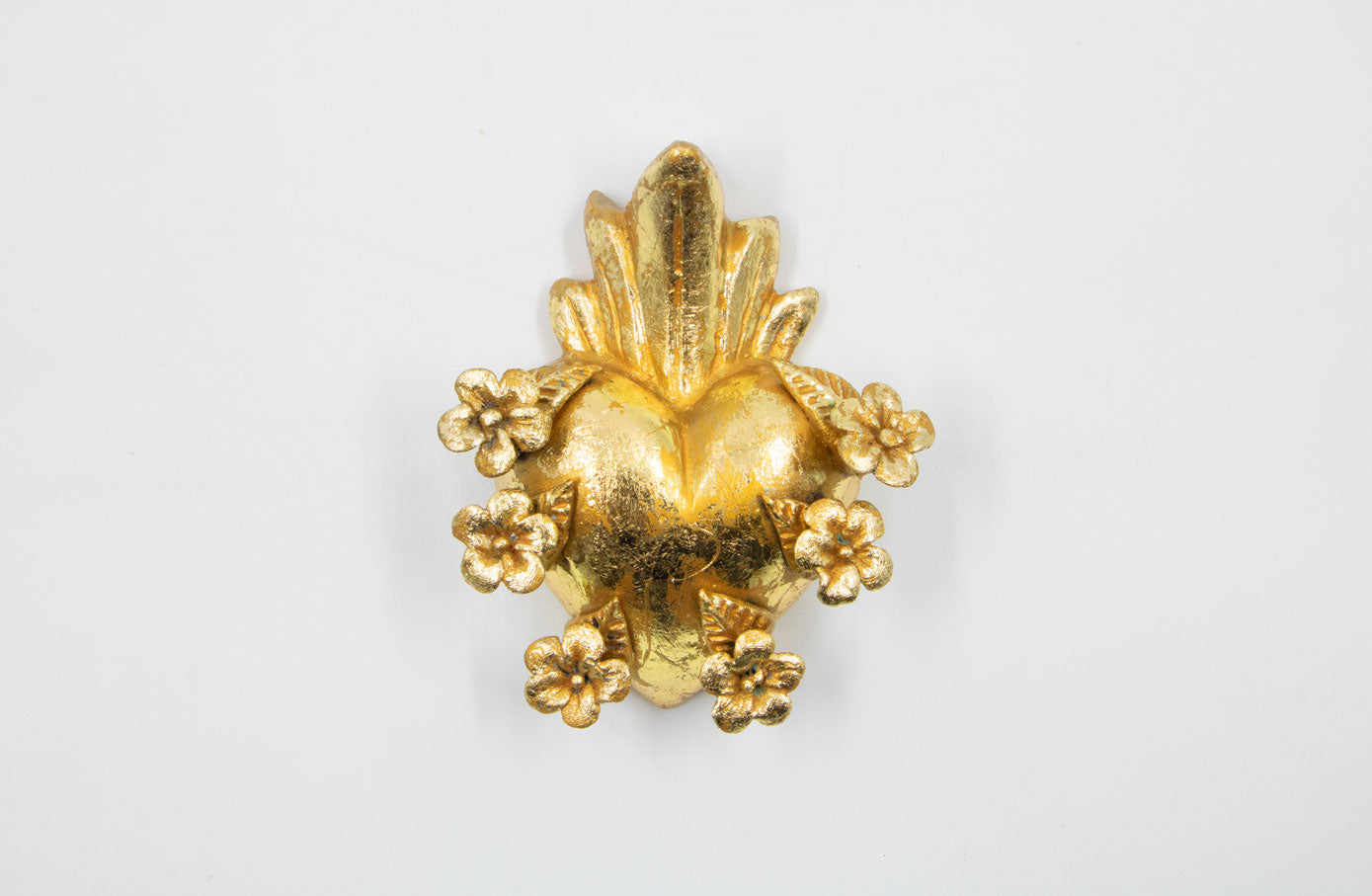 Corazón Amatitlán hecho en barro con hoja de oro por artesanos de Jalisco