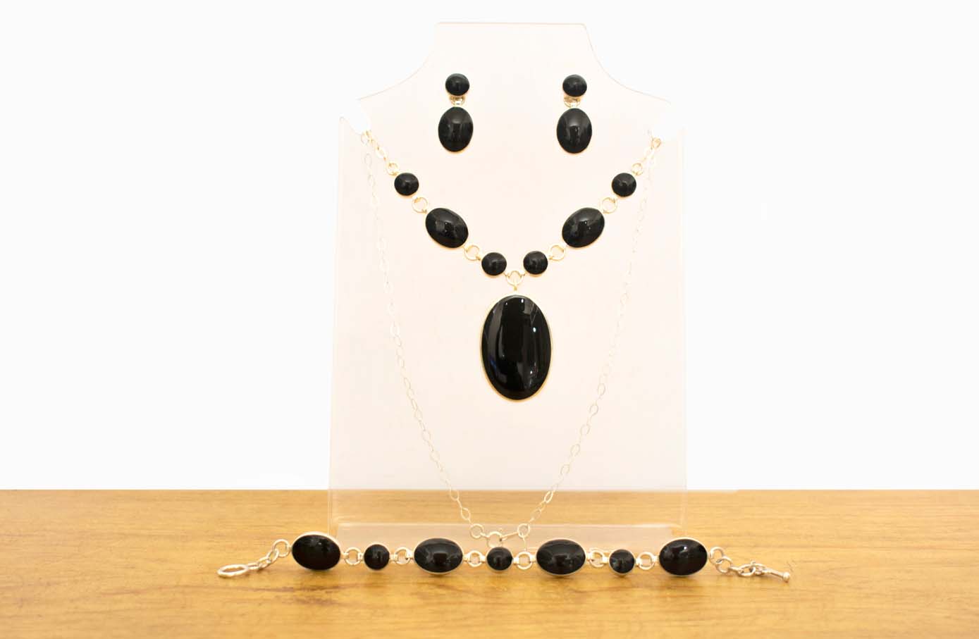 Juego de collar, aretes y pulsera de plata con piedra natural