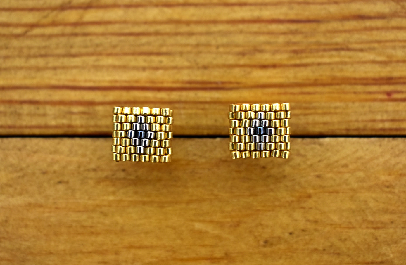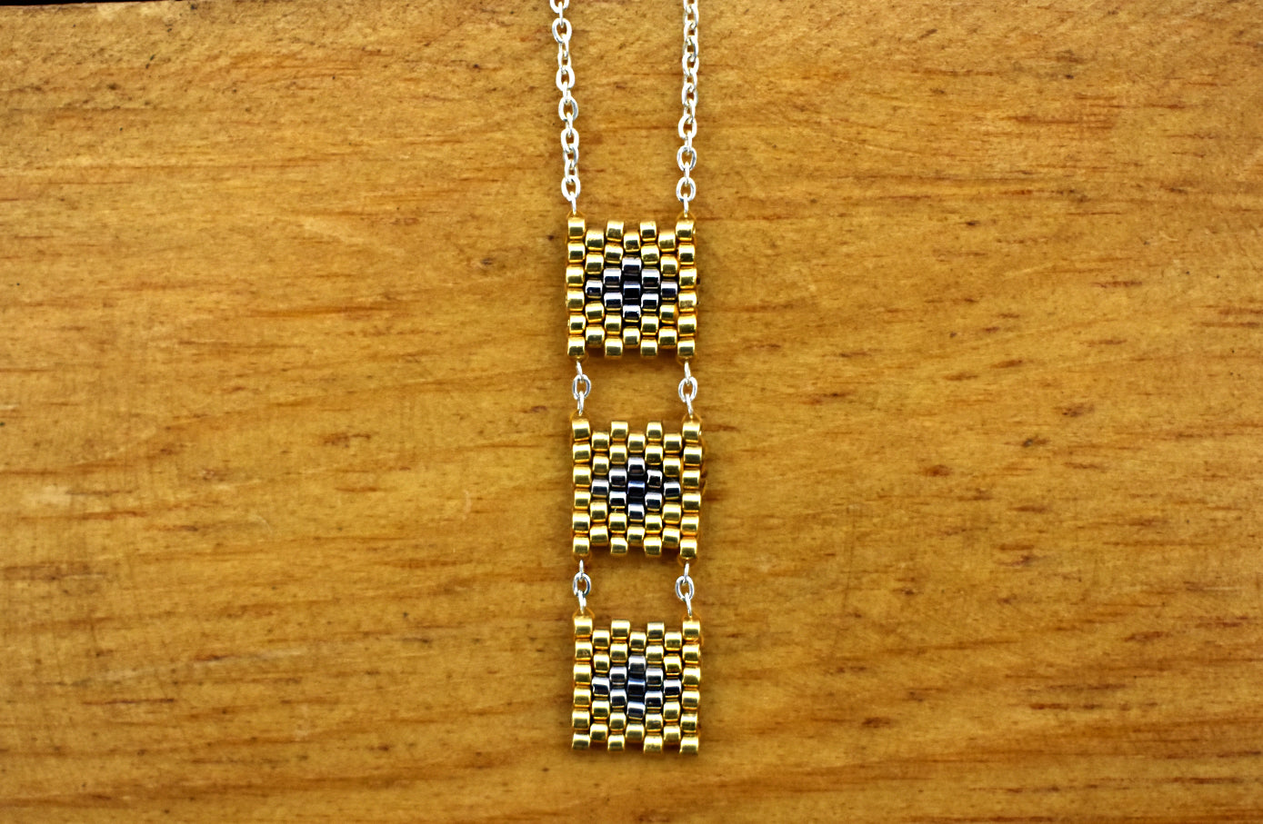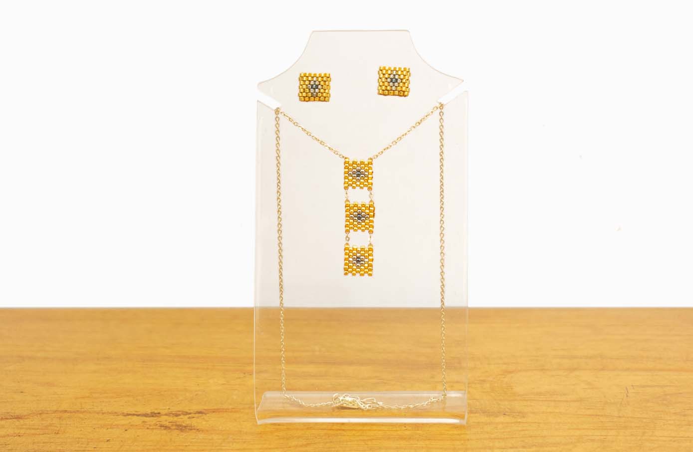Hermoso juego de collar y aretes hechos de chaquira fina dorada y plateada. Hechos artesanalmente en Jalisco.