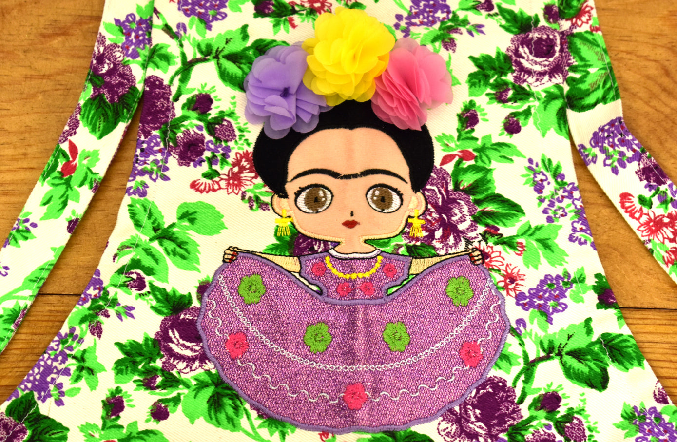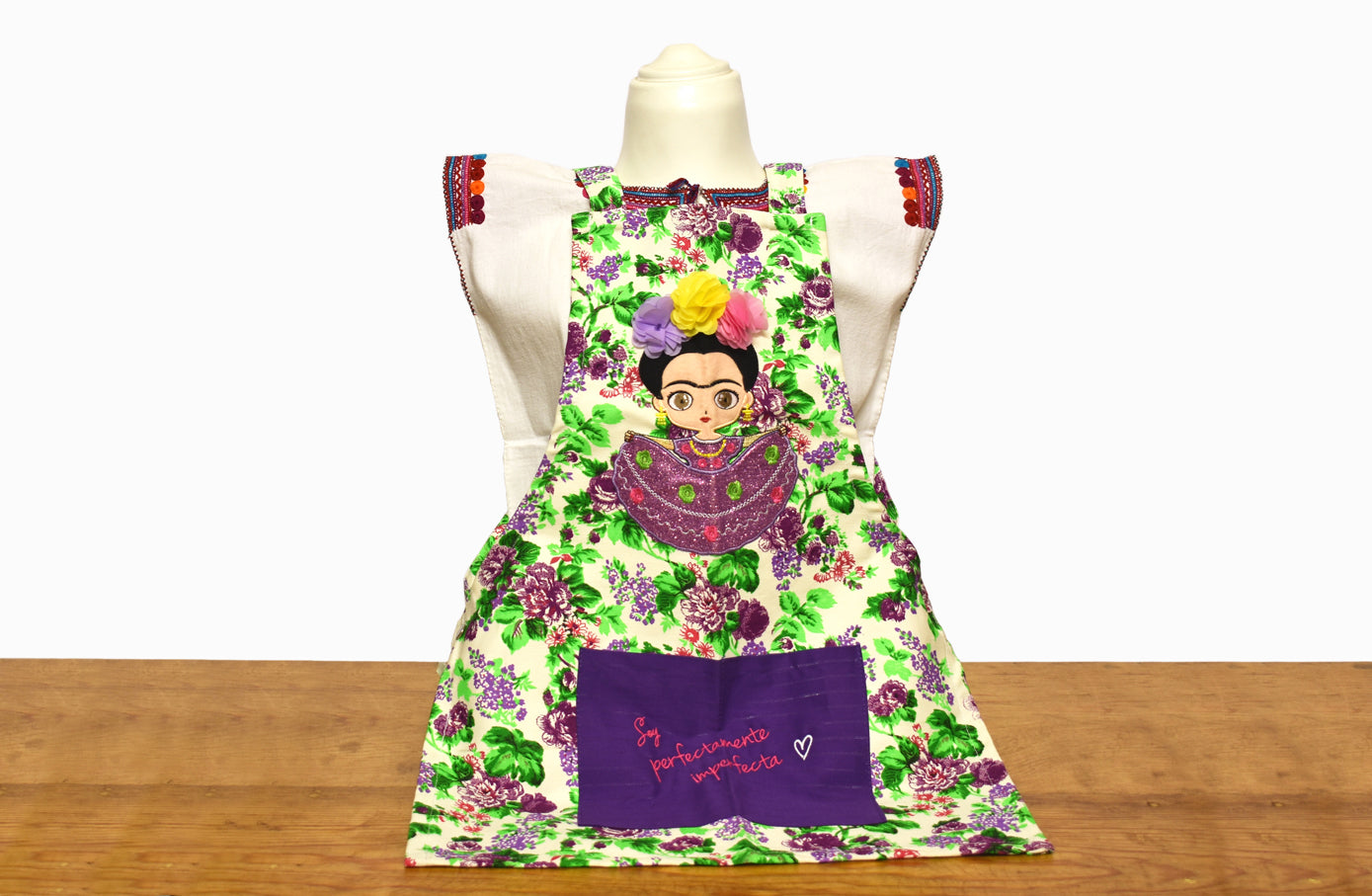 Hermoso mandil para niña, bordado y estampado. Hecho artesanalmente en el Estado de México.
