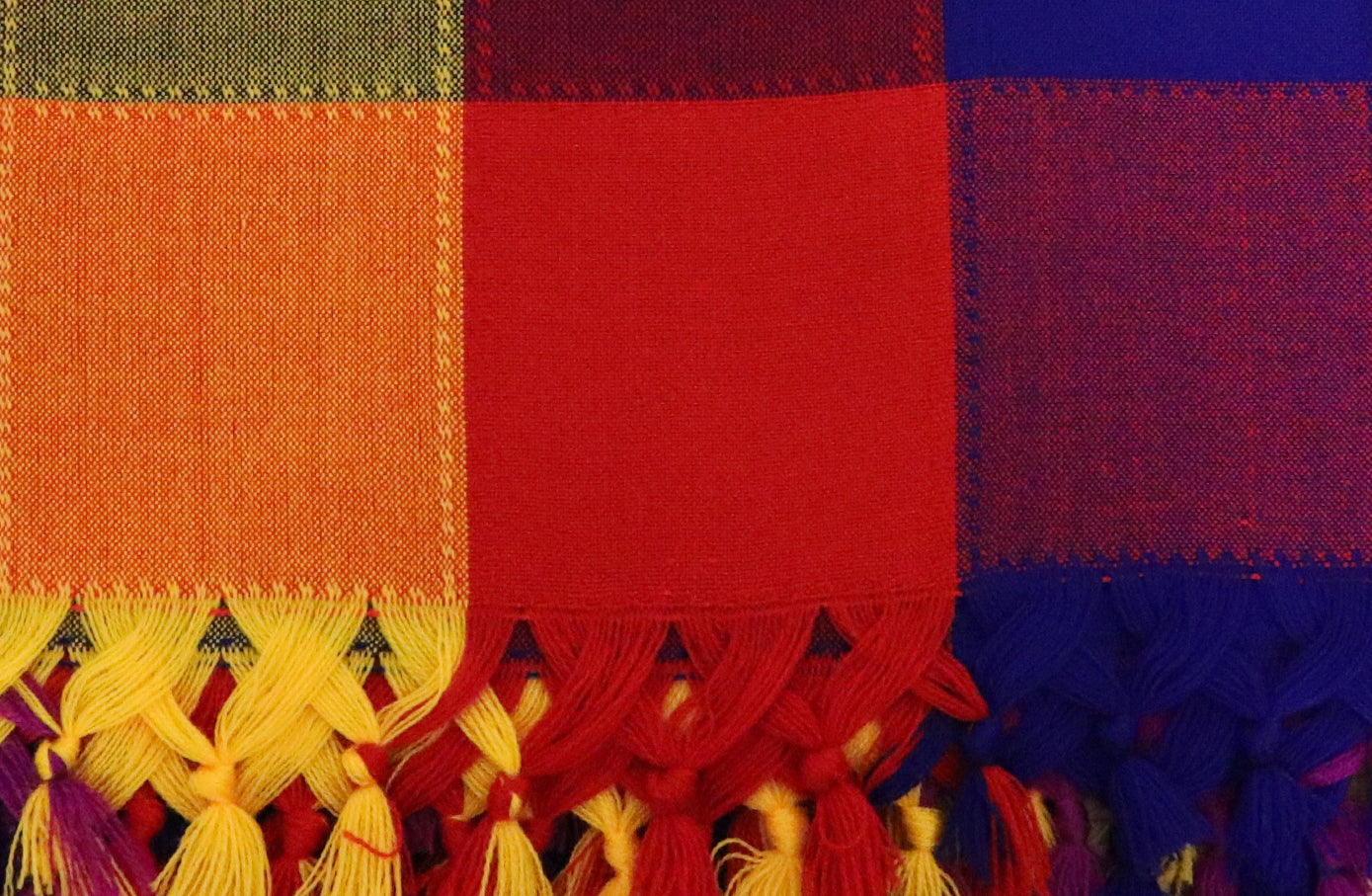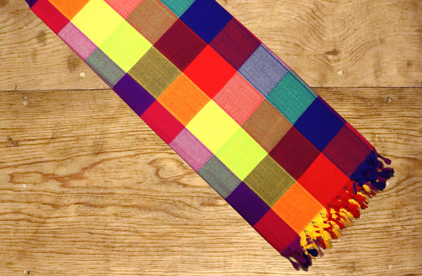 Mantel a cuadros de colores, hecho artesanalmente en el estado de Tlaxcala.