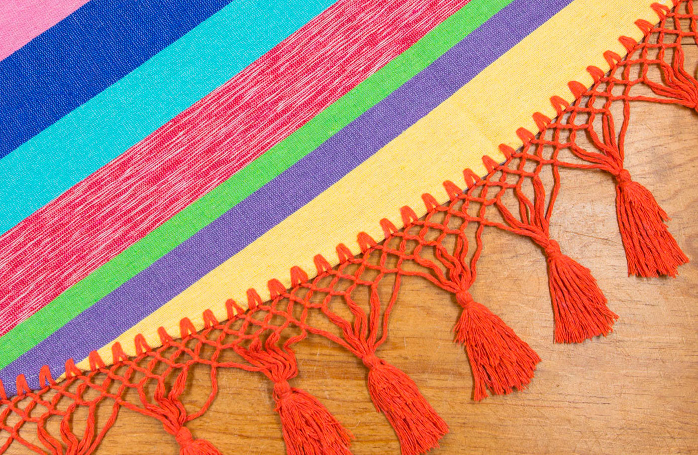 Hermoso mantel redondo, hecho artesanalmente con algodón por artesanos de Oaxaca.