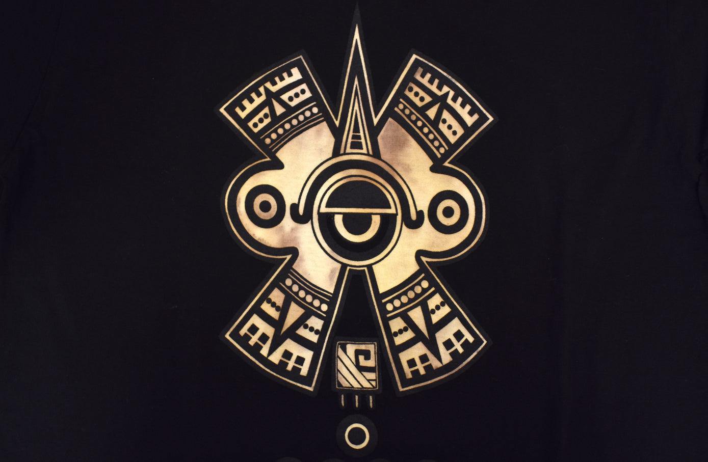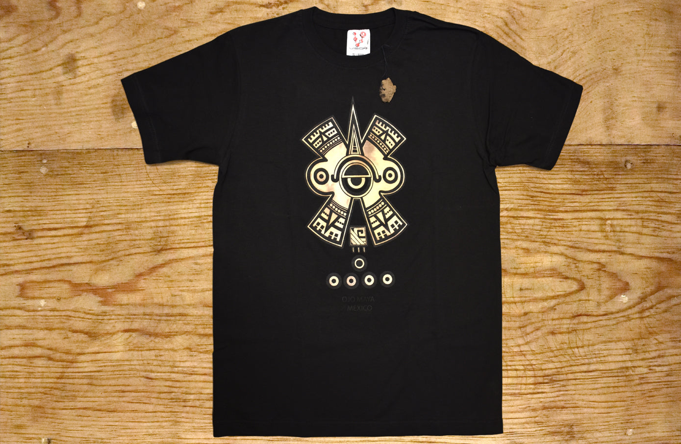 Playera para caballero, hecha de algodón y estampada con gráfico de "ojo maya". Hecha por artistas mexicanos en la Ciudad de México.