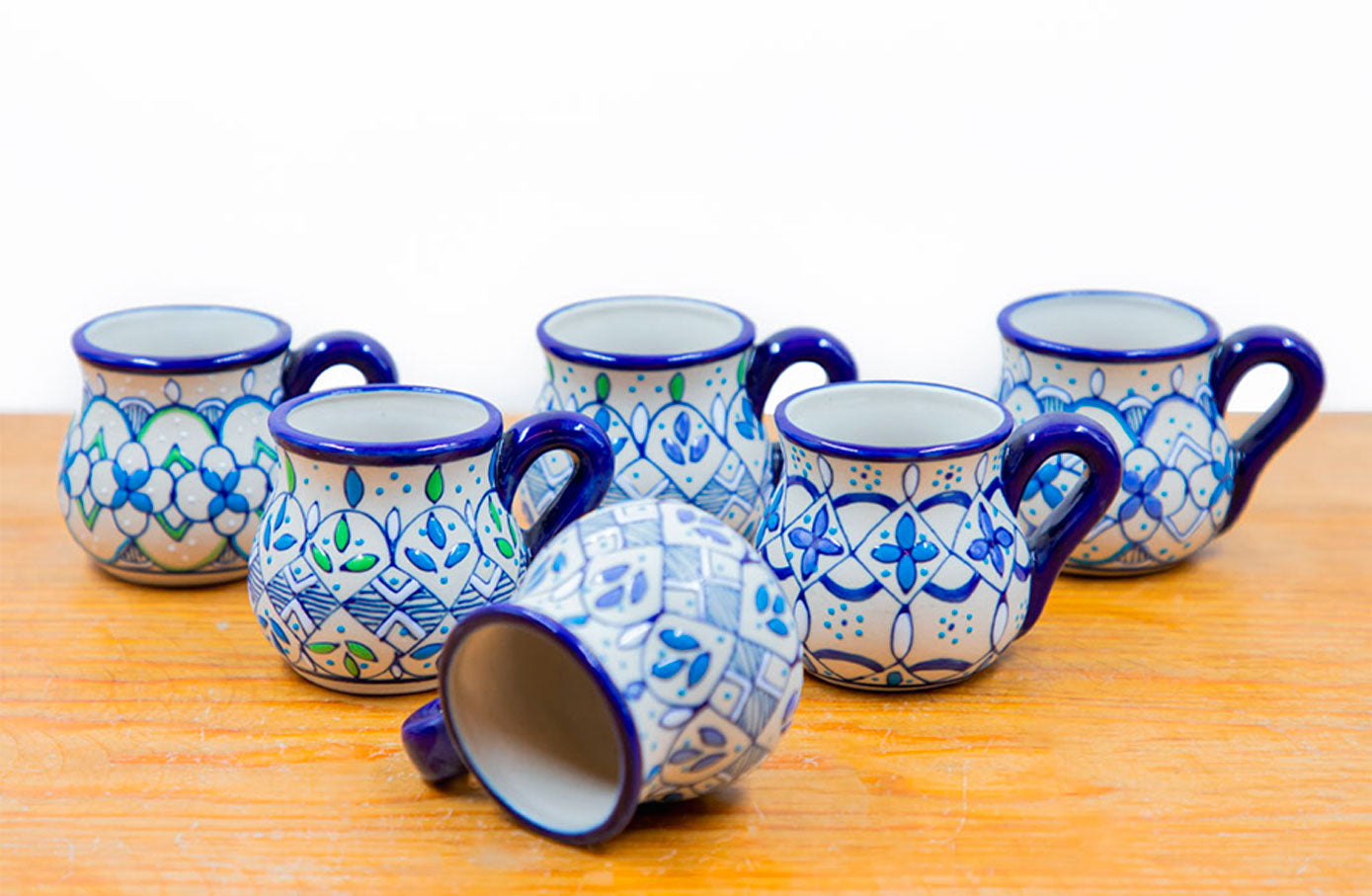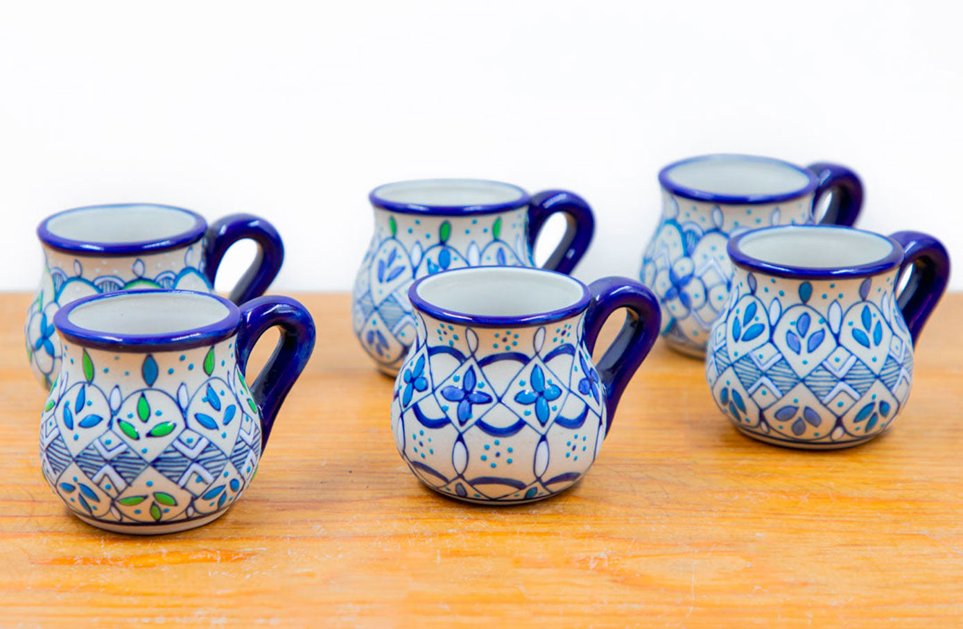 Set de 6 jarritos artesanales de cerámica, esculpidos a mano por artesanos de Querétaro.